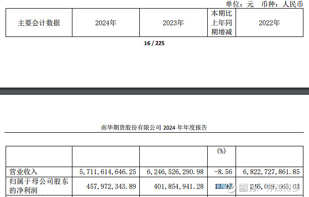 A股上市的“南华期货”2024年度归母净利润还出现约14%的上升。