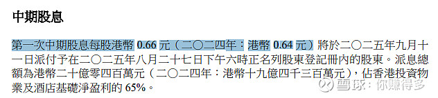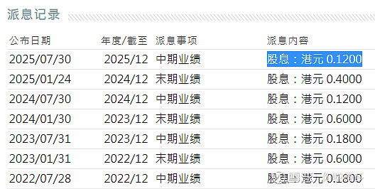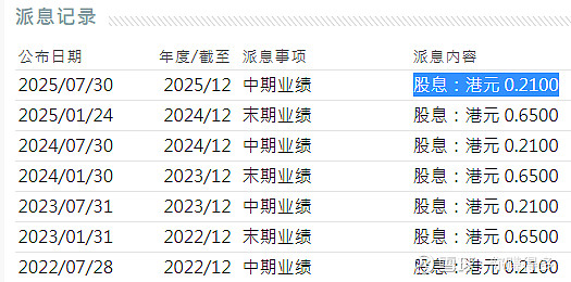 中期股息由2024年中每股0.64港元增加到当前0.66港元。