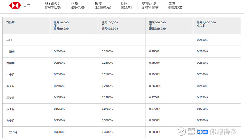 香港汇丰一年期的存款利率甚至低至0.3%。