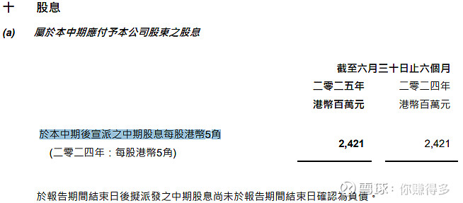 问题是去年同期盈利还有1.12港元,但分红也仅有0.5港元。现在能盈利全部都拿来分红,下半年还要保持去年每股分红1.3港元水平的话,就等于下半年起码能盈利1.17港元(上半年每股盈利扣除分红0.5元后余0.13港元),而且要把盈利100%拿来分红。这样的情况会发生吗,让我们“拭目以待”!