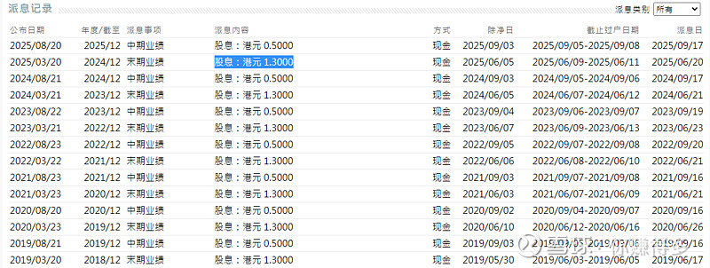 但分红却是每股0.5港元,分红占每股基础盈利近80%。