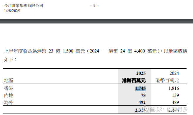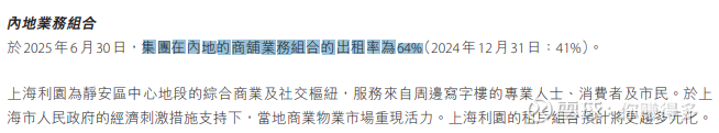由于“希慎兴业”的主要业务就在香港,业务也是以租赁为主,而2025年中期业绩没有披露香港和内地的明细,所以只能以此数据来反映香港的租赁业务。