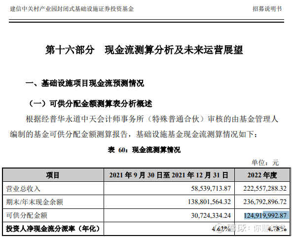 根据《招募说明书》,当时对2022年的营业收入、归母净利润、可分派金额都进行过预测。