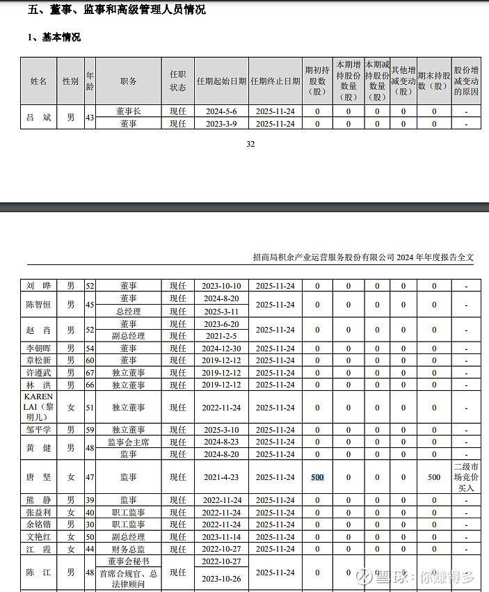 根据2024年报披露,仅有监事唐坚一人购买了500股,这个数量我理解更多是一种象征意义吧?而公司一把手董事长和二把手总经理甚至连一股都不持有,更为重要的是这两位高管还是新上任(2024年5月和2025年3月)。