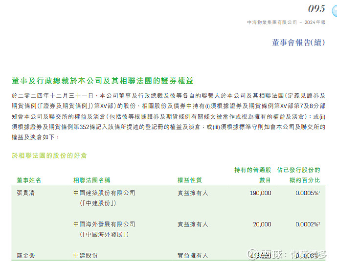 同是央企的“中海物业”,高管的持股量也是“不甘后人”。