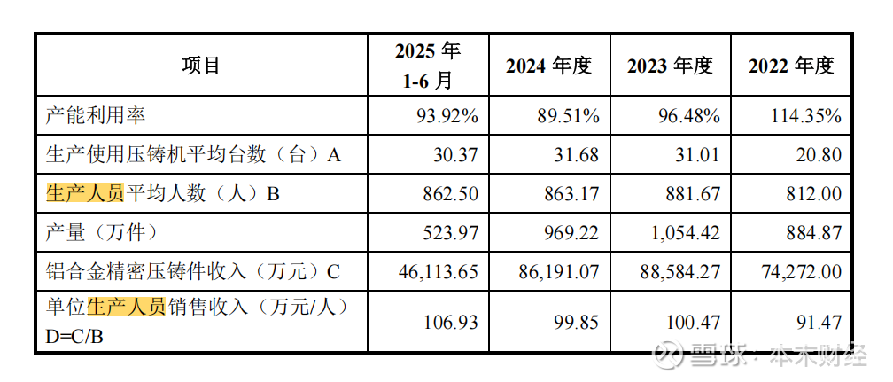 对比之下,根据同花顺iFind统计,我们取年初年尾平均值可以计算得出,广东鸿图2024年的单位生产人员销售收入是152.06万元,文灿股份2024年的单位生产人员销售收入为155.75万元。