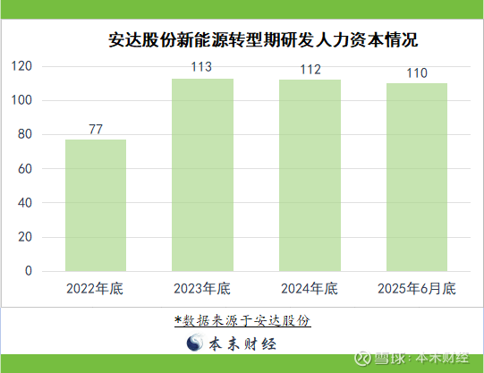 值得注意的是,安达股份声称“持续加大新能源领域研发投入”。然而2022年底研发人数为77人,2023年底为113人,2024年底为112人,2025年6月底为110人,而且上千个员工当中,本科以上学历的人只有5个。若安达股份真是全力向技术密集型的新能源部件转型,研发与高技术人员的人力资本应显著增加,而非是几乎停滞。