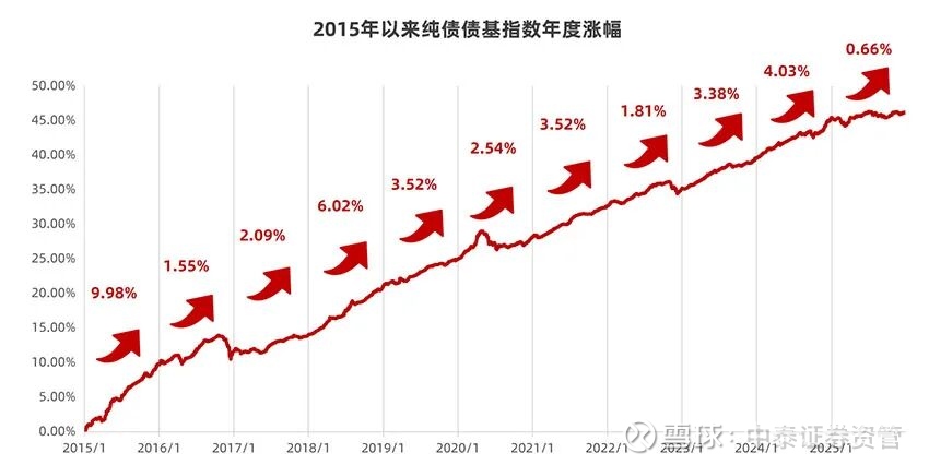 注:纯债债基指数代码:930609.CSI,数据来源:Wind,统计时间为2015年1月1日-2025年12月31日。数据时间较短,不能反映市场运行的全部阶段,不同市场情形下的投资可能与上述结论不一致,请投资者审慎决策。指数过往业绩不代表本基金未来表现,不构成基金投资收益的保证或任何投资建议。基金有风险,投资需谨慎。