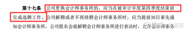 一是为了满足监管合规要求 + 为后续操作扫清程序障碍,另外,更换审会计计机构提供制度依据是重组常需。