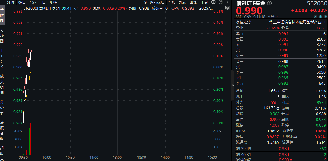 热门ETF方面, 7月17日早盘,聚焦国家安全、信息安全、产业安全的信创ETF基金(562030)场内飘红,成份股方面,赢时胜涨超2%,概伦电子、软通动力、致远互联、恒生电子涨逾1%。