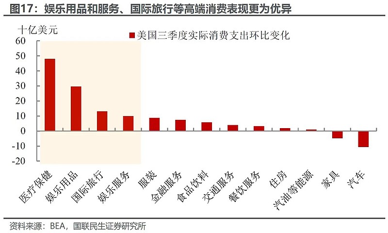 美国除了高额的医疗保险和体健支出,精神娱乐还在消费景气里面,其它行业都在miss