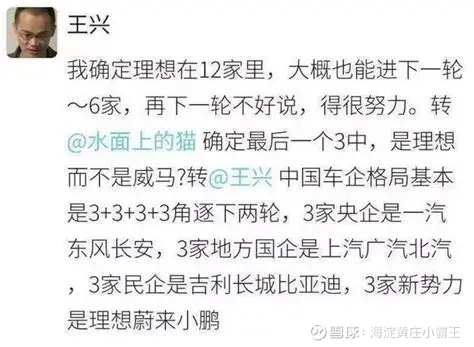 央企1.5家(实质上只有1家) + 国企1.5家(实质上只有上汽或广汽) + 传统民企3家(比亚迪+吉利+长城或奇瑞)+ 新势力2-3家($零跑汽车(09863)$ 或$小鹏汽车(XPEV)$ 、$蔚来(NIO)$ 或理想)+小米和鸿蒙智行