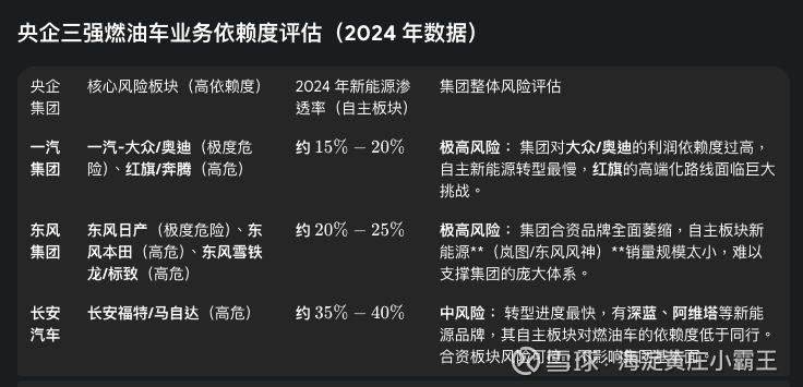 先说央企,尽管在国资委的 “单独考核” 政策引导下,三家央企正加速新能源转型,但只有长安变化大,三大央企最终很可能合并或者进行进一步整合,大概率在实质上只留下一个选手。