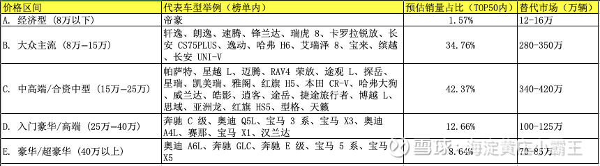 研究以上表格,8万以下的经济性市场几乎全是新能源的天下了。