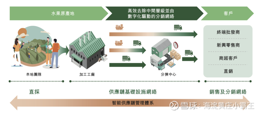洪九果品主打高端进口水果,比如榴莲、山竹、龙眼,看起来是个妥妥的消费公司。但它的核心玩法并非靠品牌溢价赚钱,而是靠“端到端”供应链:从海外100+原产地直采,用数字化系统“洪九星桥”控货,减少中间环节损耗。