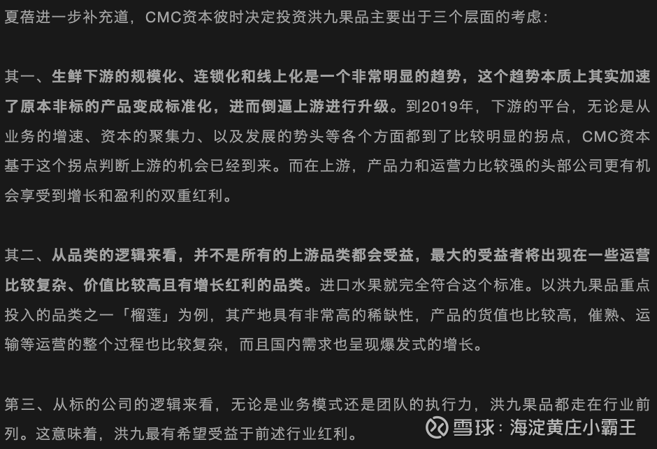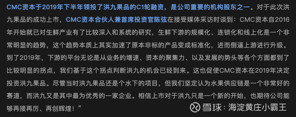 偶然看到新闻,曾经让资本疯狂的“水果大王”——洪九果品(06689.HK$洪九果品(06689)$ ),市值曾高达670亿港元,如今却濒临退市,股价暴跌95%,创始人身陷囹圄。还记得2022年它的辉煌,今天重读600多页的招股说明书,假设不知道2022年之后的故事,看看有什么新收获。