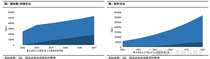 • IT服务的增长率将略快于硬件,五年复合年增长率为24.3%。为了实现业务流程优化、提升客户体验、增强数据驱动决策能力等目标,企业会采购大量与数字化转型相关的IT服务,包括IT 服务团队进行数据标注、算法优化等工作,以及在模型部署和运维阶段IT服务来保障系统的稳定运行和性能优化。