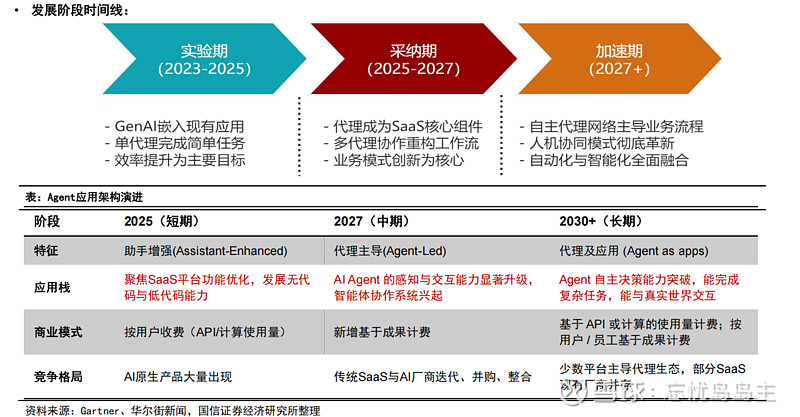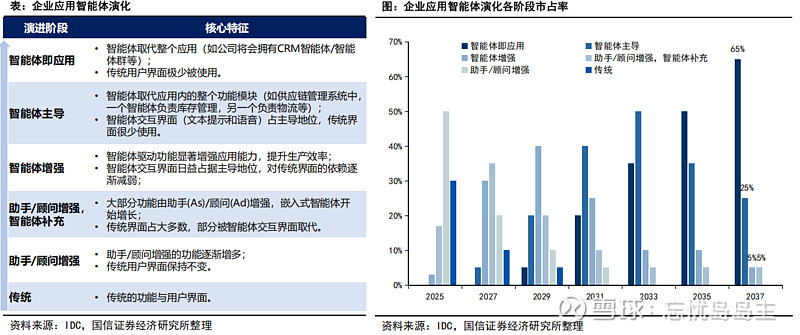 未来10年,企业应用智能体化演进将从功能增强逐步迈向由智能体主导,2037年“智能体即应用”将成为主流。