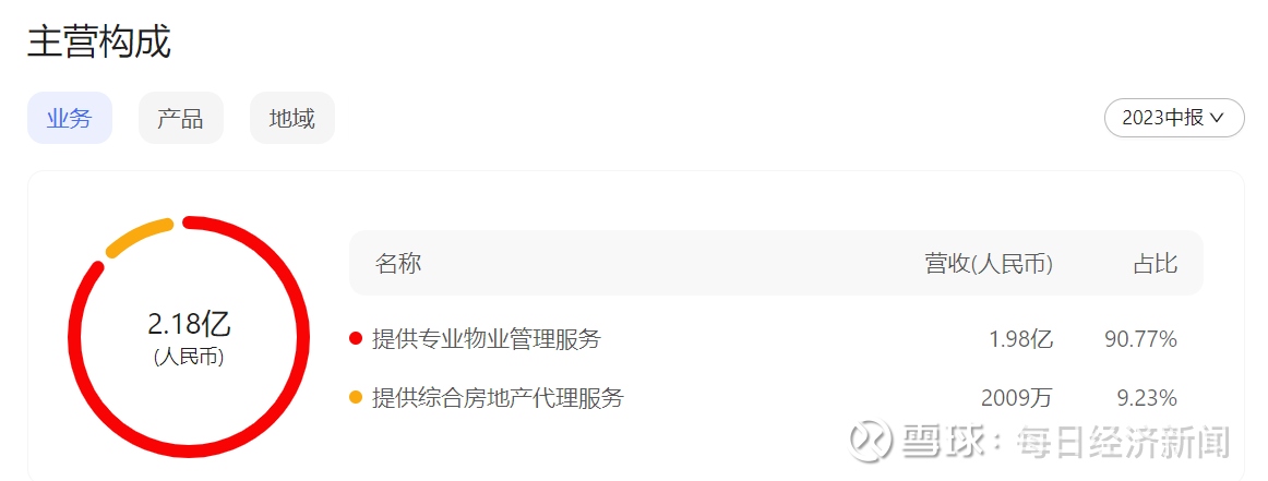 从收入分布来看,物业管理服务贡献了绝大部分收益。在2.18亿元的营收中,物业管理服务收入同比增长12.5%至约1.67亿元,占比76.6%;房地产代理服务收入占比9.23%,非业主增值服务和社区增值服务均同比下降。