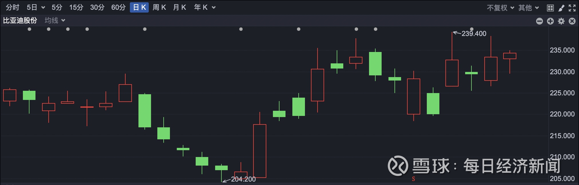 个股方面,比亚迪股份早盘一度下跌超1%,随后跌幅收窄。截至发稿前,比亚迪股份强势翻红,并上涨0.43%。消息面,根据港交所最新披露的文件,6月11日,巴菲特旗下伯克希尔哈撒韦公司减持134.75万股比亚迪股份,减持均价230.46港元/股,合计减持3.11亿港元,其持股也降至6.90%。这也是时隔8个月之后,巴菲特再次出手减持。今年以来,比亚迪股份表现良好,年内累计涨幅近9%。