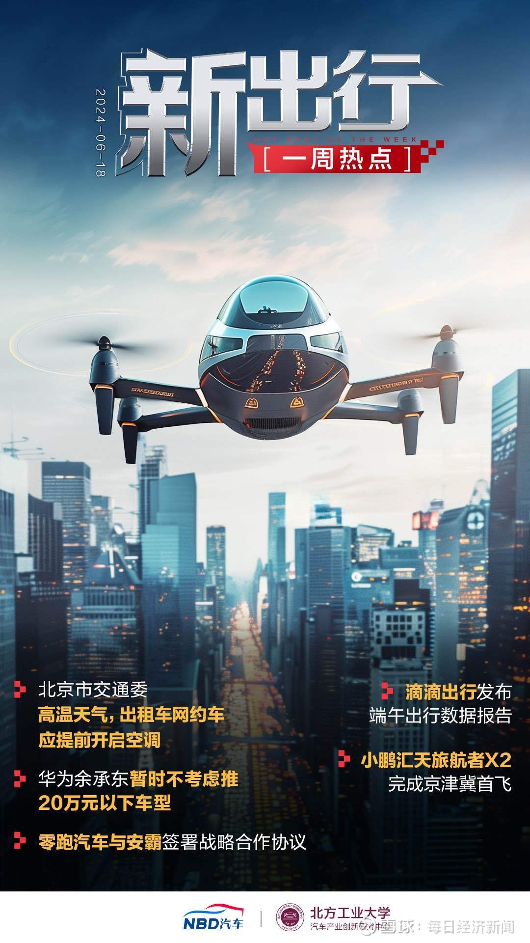 NO.5【小鹏汇天旅航者X2完成京津冀首飞】6月16日,在中国廊坊国际经济贸易洽谈会上,小鹏汇天旅航者X2在北京大兴国际机场临空经济区正式完成首飞。小鹏汇天表示,这也是包括飞行汽车在内的载人低空飞行器在京津冀地区的首飞。小鹏汇天称,其首款量产产品正是分体式飞行汽车“陆地航母”,将于今年四季度开启预订。