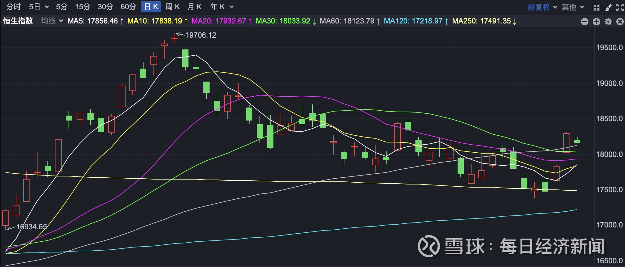 其他方面,环保板块、有色金属、黄金股、重型机械板块等走强。科网股整体走弱,百度跌超3%、京东跌超2%,美团、阿里巴巴、联想跌超1%。