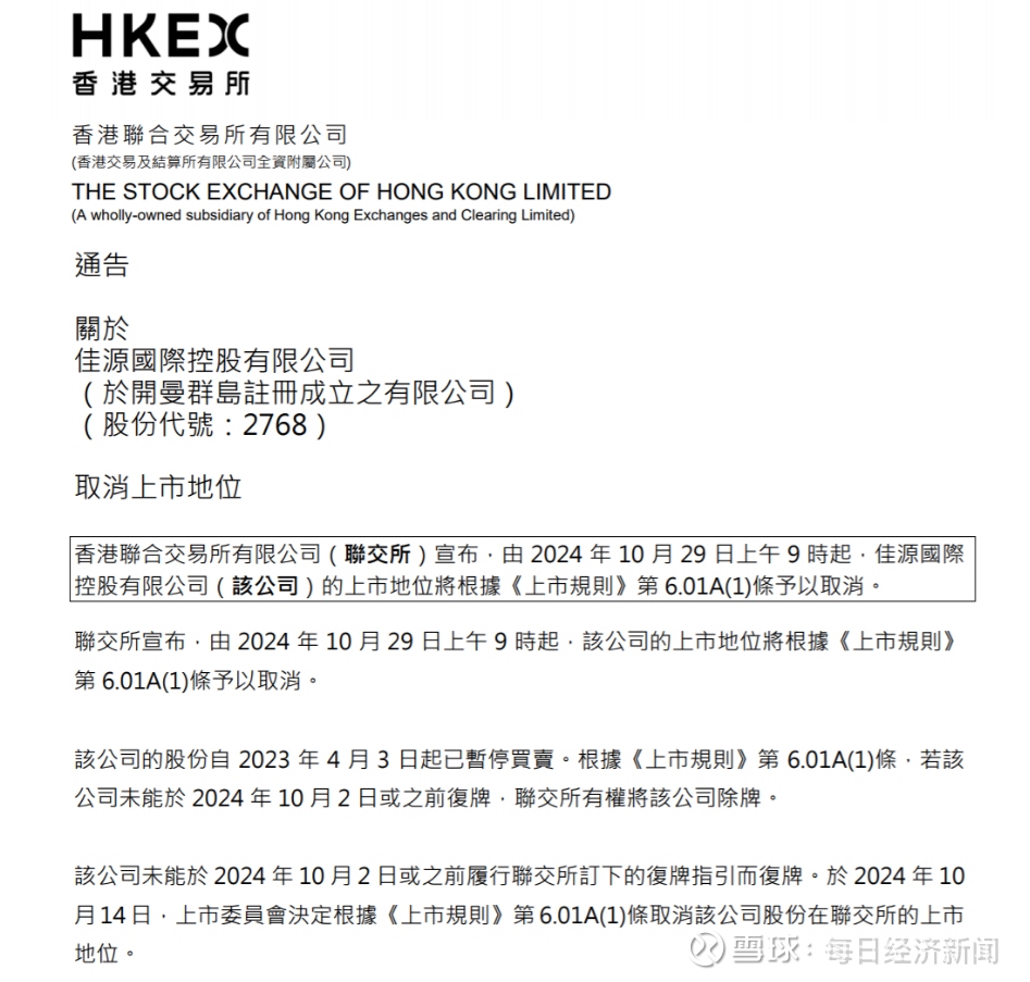 2018年8月1日,港交所新修订的《上市规则》正式生效,其中“快速除牌”机制规定:若主板公司的证券连续停牌18个月(主板《上市规则》第6.01A条)或GEM公司(即创业板公司)的证券连续停牌12个月(GEM《上市规则》第9.14A条),港交所可取消有关公司的上市地位。