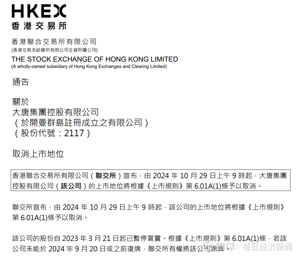 10月24日,大发地产集团有限公司(以下简称大发地产)、佳源国际控股有限公司(以下简称佳源国际)、大唐集团控股有限公司(以下简称大唐地产)三家港股上市房企分别发布公告称,其在联交所的上市地位将被取消,并于10月29日被摘牌。
