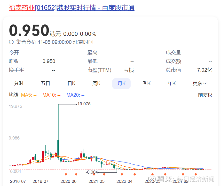 资本市场方面,由于彼时双黄连口服液的爆火,供不应求,2020年初福森药业股价一度飙升至19.975港元。随后,由于双黄连口服液降温,公司股价一路走低,截至目前,福森药业股价已跌至只剩0.95港元,较2020年初的高点跌超95%。