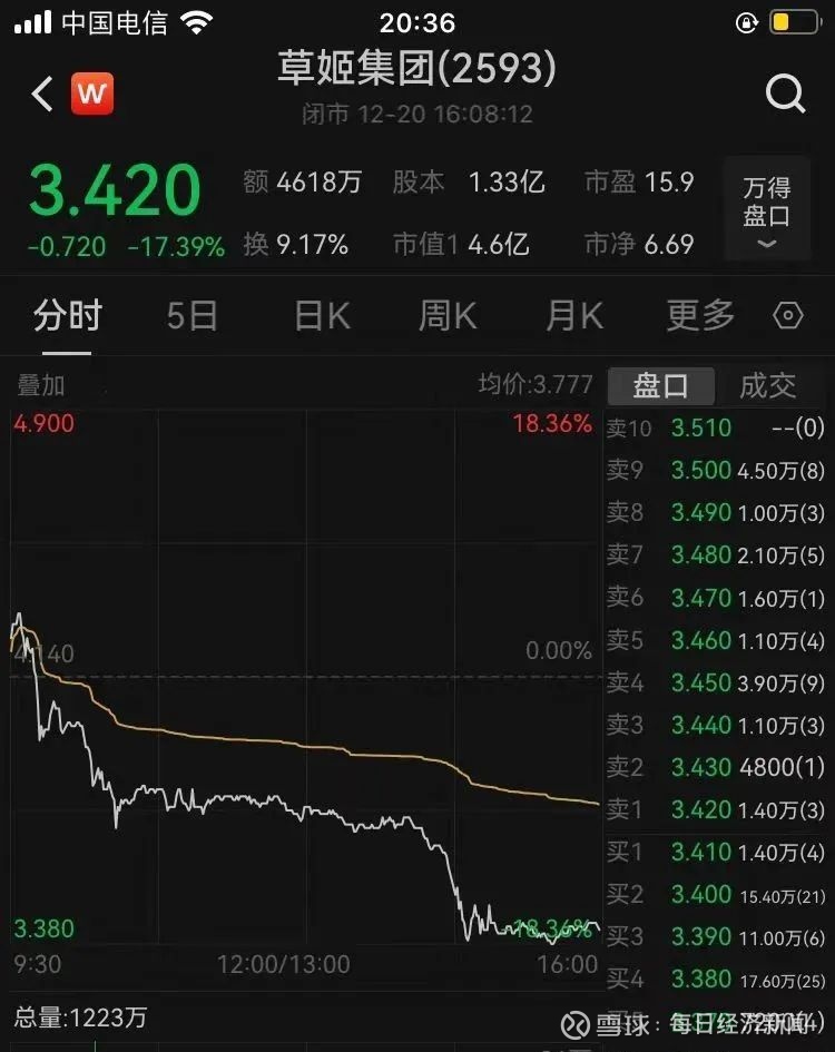 草姬集团首日挂牌,开报4.69港元,较招股定价3.75港元高25.1%,开市后曾一度冲高至5.05港元,收报4.14港元,较招股价高10.4%。12月20日,草姬集团大跌17.39%,每股报3.42港元,总市值4.56亿港元。