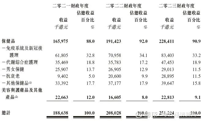 其中,保健品的收入占比高达九成。具体来看,免疫系统及新冠后护理产品收入占总营收的33.2%;代谢综合征护理产品收入占总营收的18.9%;其他保健品占15.8%;男女保健和抗衰老产品收入各占11.5%。