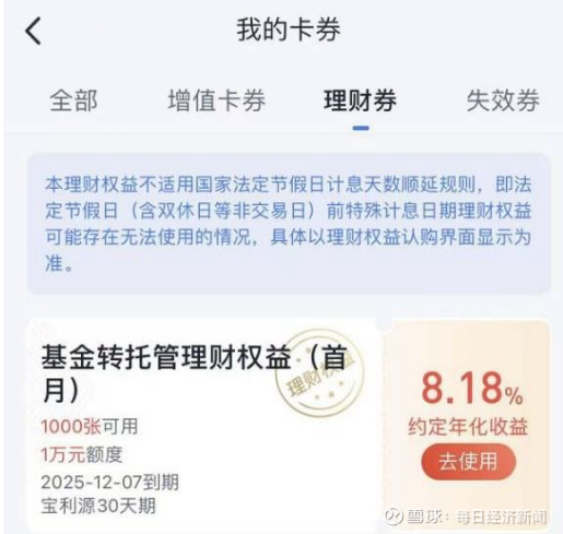 记者实测:理财券多次“爽约”后到账为了验证上述业务的真实性,今年5月中旬,每经记者尝试从支付宝将权益类基金转托管至申万宏源,办理流程前后花费了近一周时间,过程中自动化程度较低,需要和两端的人工客服进行沟通。此外,在办理完转托管后,基金原来的盈亏状况、每日收益数据在新平台无法显示,会给投资者带来一定的不便。