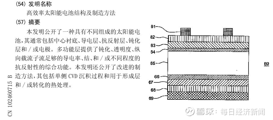 据介绍,US913074B2专利是一种高效太阳能电池结构和制造方法,申请人为“TetraSun”,申请时间为2010年4月,于2015年9月取得授权,预计权利到期日为2031年11月。