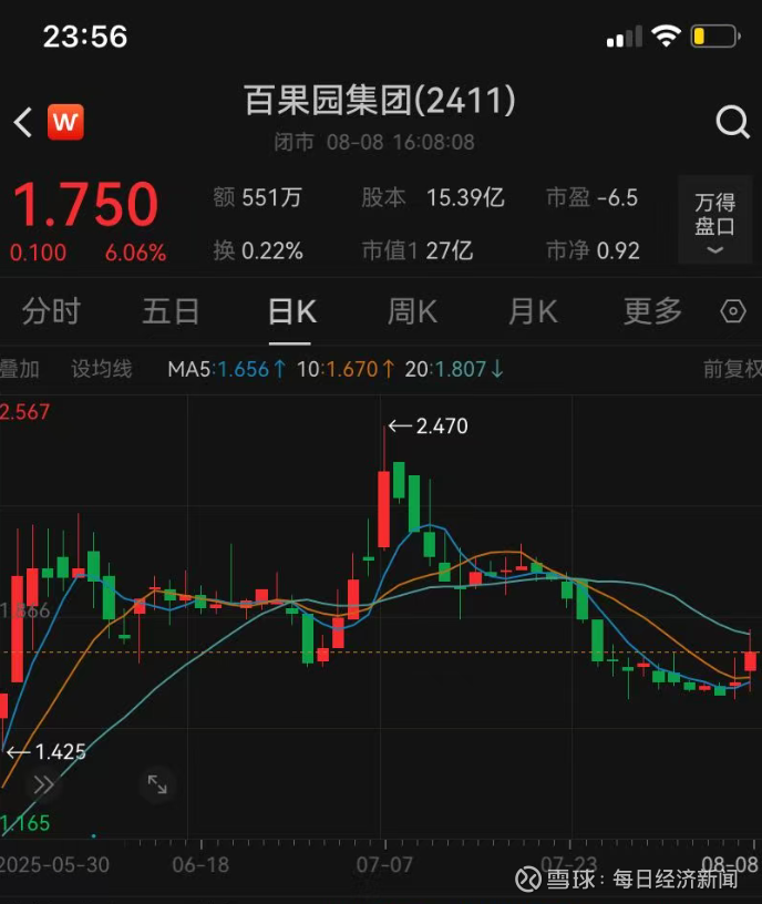 不过,之后百果园集团股价震荡下行,目前每股报1.75港元,总市值为26.94亿港元。