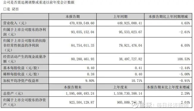 山河药辅26日晚披露的2025年半年报显示,上半年公司实现营业收入4.71亿元,同比增长4.65%;归属于上市公司股东的净利润9303.52万元,同比减少2.61%。