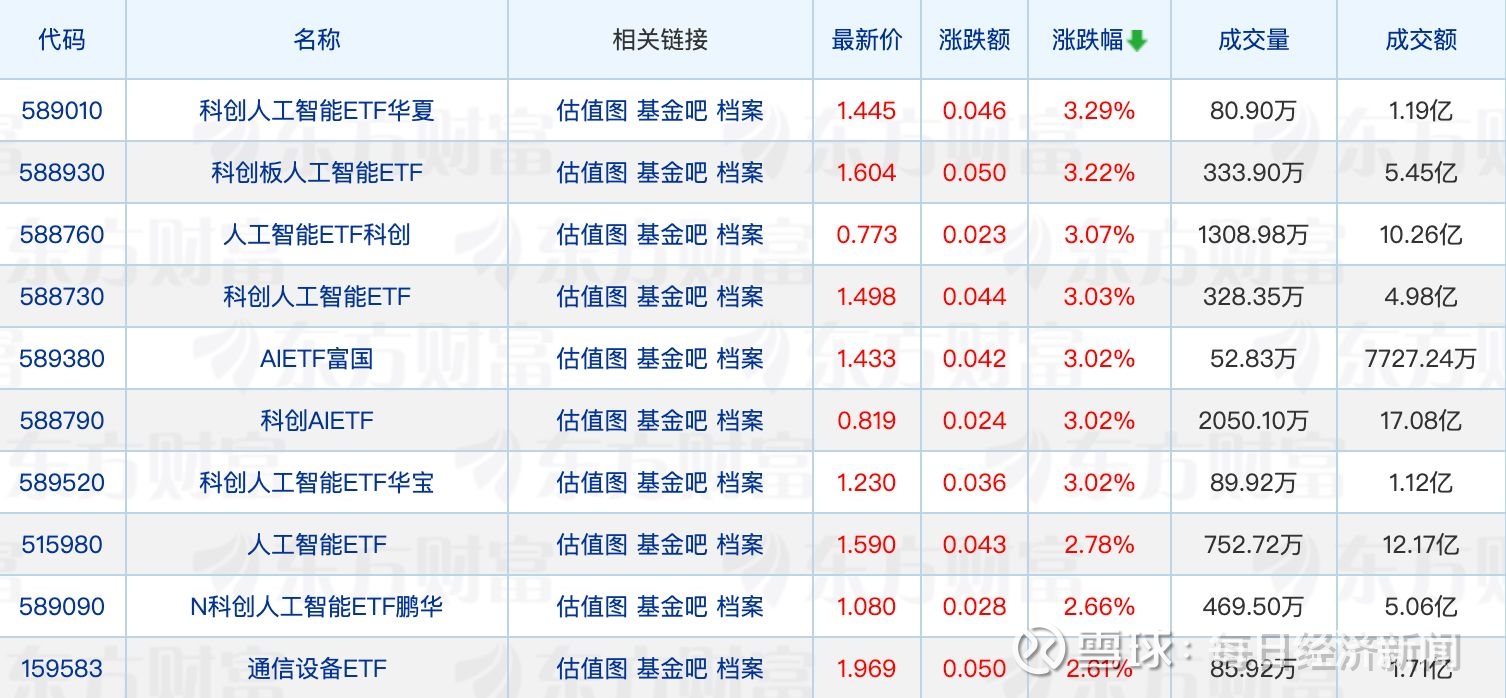 具体来看,CPO等算力硬件股维持强势,新易盛等多股再创历史新高,科创板人工智能相关ETF走强,最高涨3.29%。