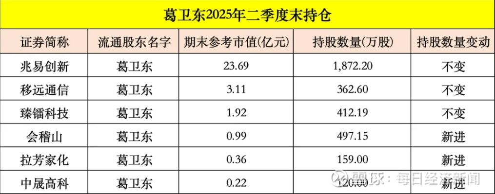 随着A股上市公司2025年半年报披露完毕,私募大佬葛卫东的最新动向浮出水面。