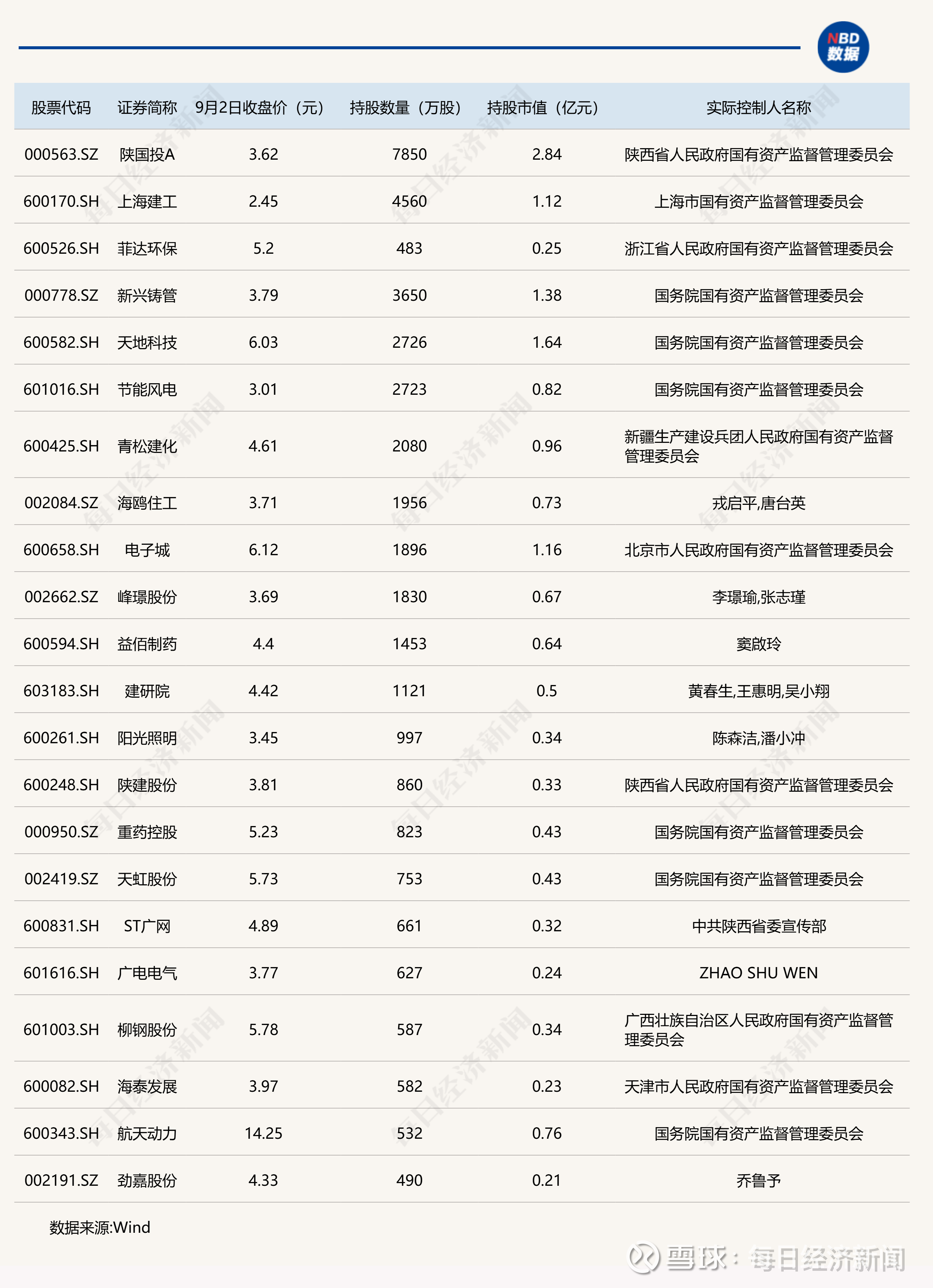 若再翻看这些个股的实控人,你会发现,菲达环保、节能风电以及海泰发展的实控人均为国资委或地方国资委。