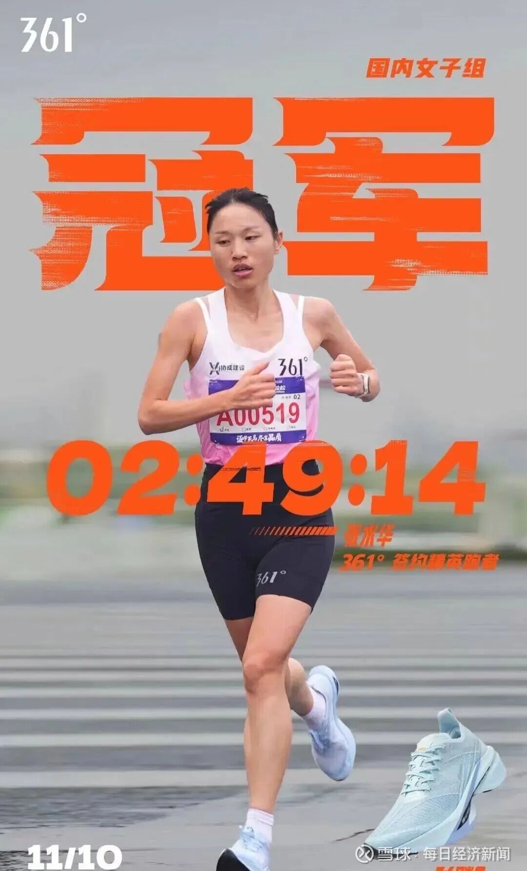 近日,在2025哈尔滨马拉松比赛上,来自福建医科大学附属第一医院的“最快女护士”张水华,以2小时35分27秒刷新个人最好成绩,获得国内女子组冠军。赛后张水华哭诉“望领导支持调休跑马拉松”的视频引发讨论。在张水华的个人抖音主页上,标注有“路跑签约品牌361°”字样,其抖音账号也曾发布过带有“361°”LOGO和“361°签约精英跑者张水华”字样的海报。