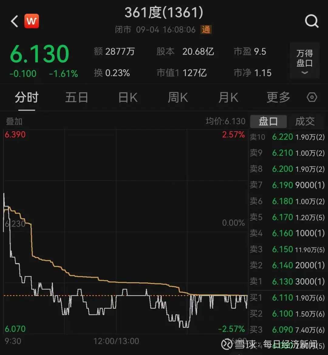 截至9月4日收盘,361度报6.13港元/股,总市值127亿港元。