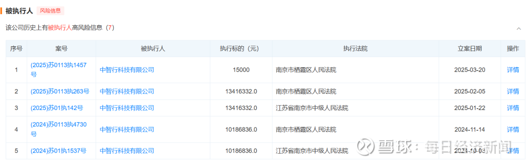 从2024年10月开始,中智行多次成为被执行人,历史被执行总金额达4732.8万元;两起终本案件的执行标的总金额为2360.3万元,其中未履行金额2192.8万元。