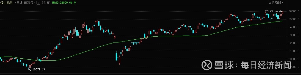 今日(9月9日)港股市场高开高走,恒生指数盘中一举突破26000点大关,站上了2021年10月以来近4年的新高。截止发稿,恒生指数今日盘中最高涨至26027.94点。