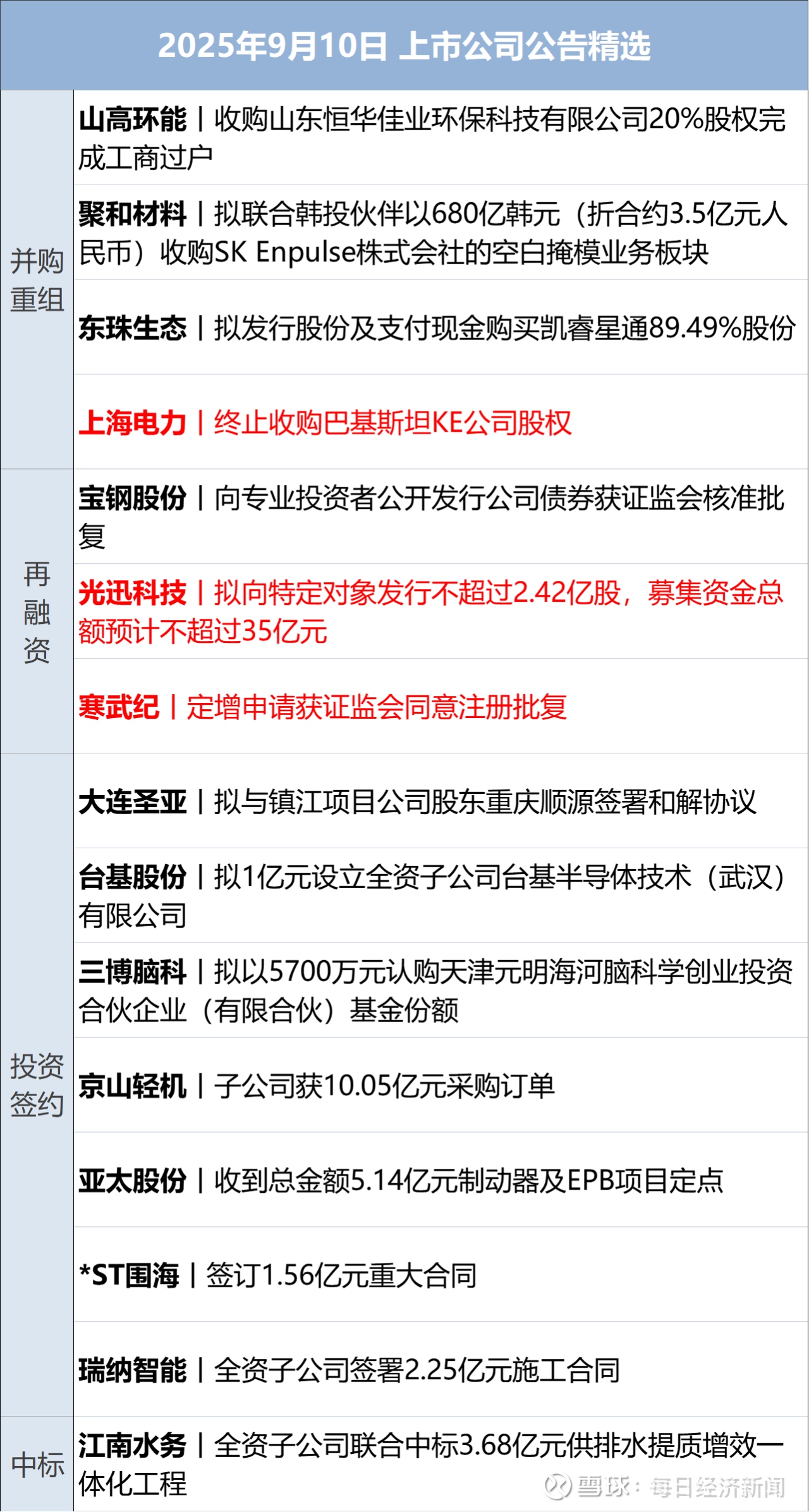 宁德时代(SZ300750,股价320.00元,市值1.46万亿元):记者获悉,9月9日上午,宁德时代控股子公司宜春时代新能源矿业有限公司召开“枧下窝锂矿复产工作会议”,专题推进枧下窝锂矿复产工作。据知情人士透露,宁德时代枧下窝锂矿采矿权证及采矿许可证申请进展顺利,比市场预期要快,预计很快将复工复产。(证券时报)
