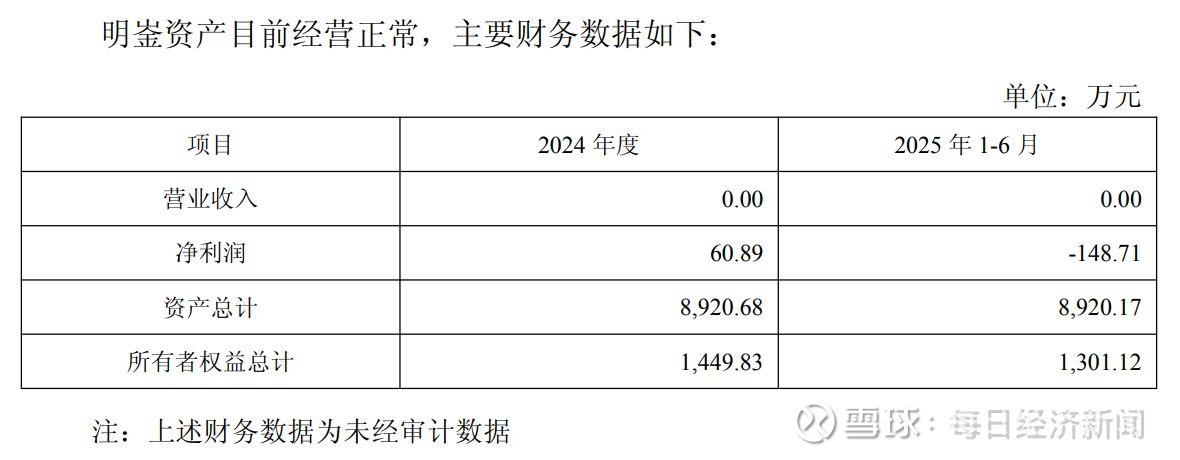 2024年及2025年上半年,明崟资产均未产生营收,对应净利润则分别为60.89万元和-148.71万元。据德创环保透露,明崟资产主要资产系华鑫环保40%股权,近年来无其他重要业务资产。