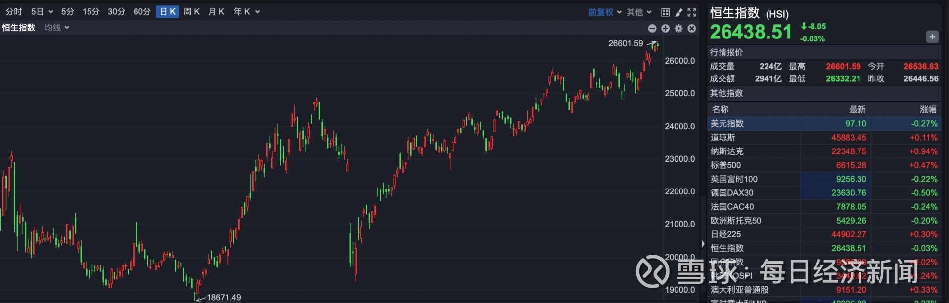 再看今日港股盘面,9月16日,港股市场全天维持窄幅震荡。截至收盘,恒生指数报26438.51点,下跌8.05点,跌幅0.03%;恒生科技指数报6077.66点,上涨34.05点,涨幅0.56%。