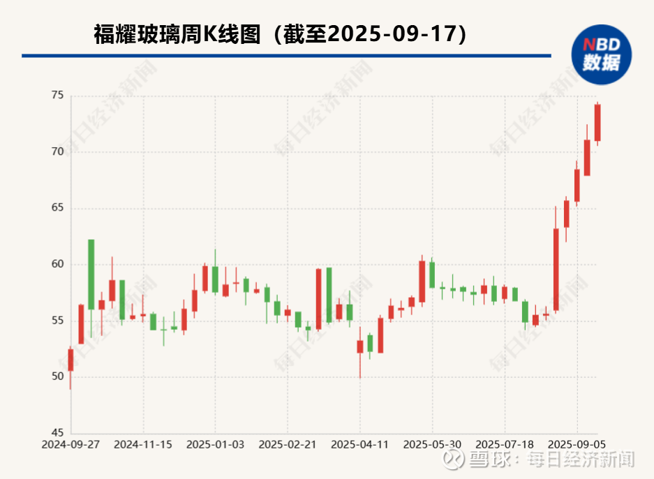 9月17日,福耀玻璃(SH600660,股价74.20元,市值1936亿元)股价再次拉升,创出历史新高。