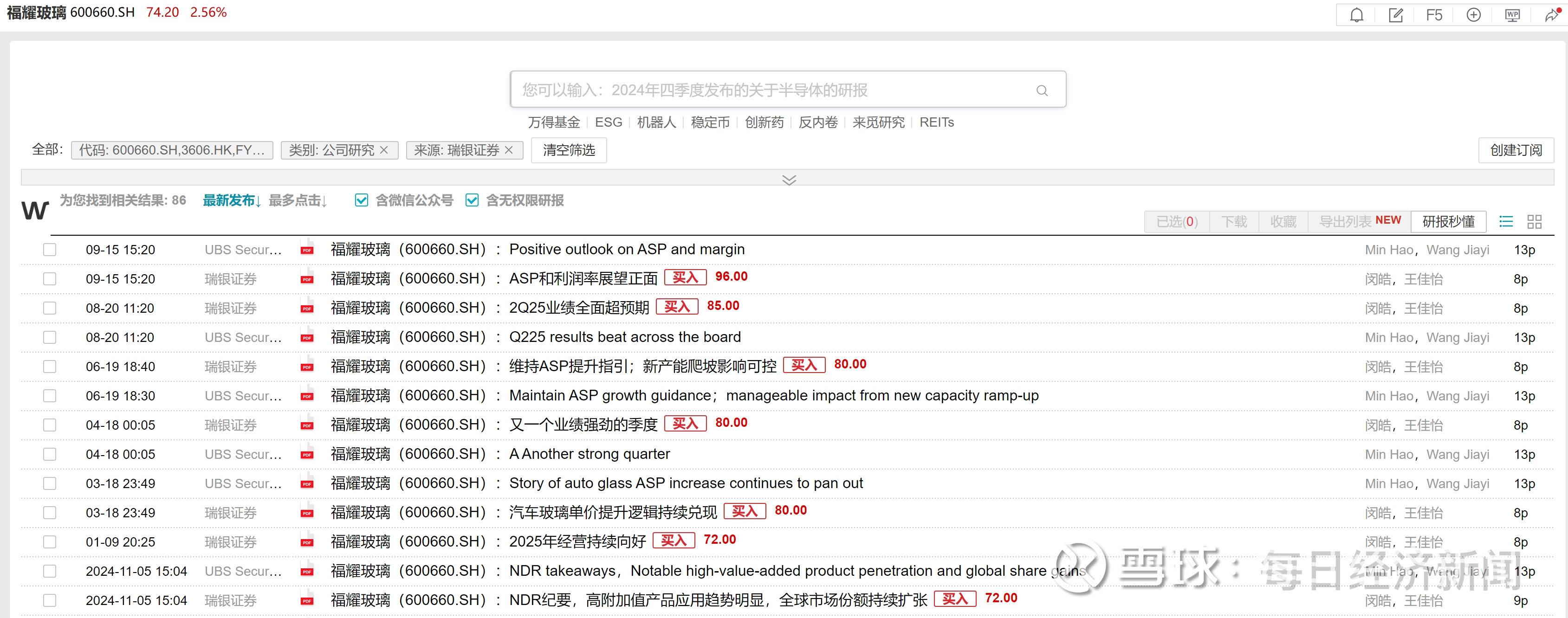 9月15日,国际投行瑞银再度上调福耀玻璃的目标价,这已是2025年以来第三次调高预期。