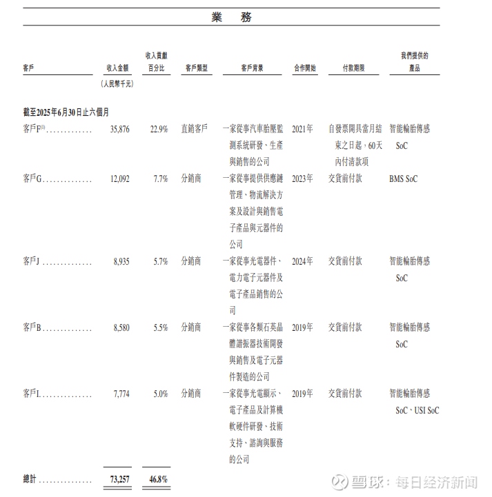 值得一提的是,客户F是琻捷电子股东旗下附属公司。客户F在2024年和2025年上半年都是琻捷电子的第一大客户,为琻捷电子分别贡献了期内总收入的25.2%和22.9%。