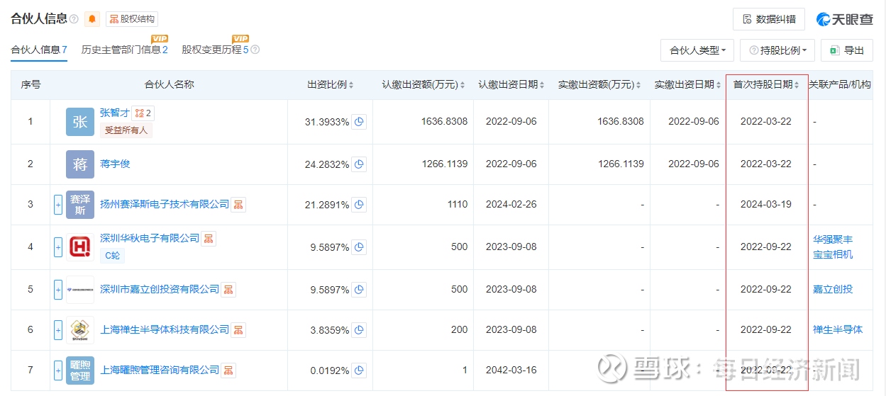据天眼查,琻捷电子收购聚洵半导体时的交易对象中,华秋电子、嘉立创、上海禅生分别持有共青城英锐创投资合伙企业(有限合伙)(以下简称共青城英锐创)9.5897%、9.5897%和3.8359%的出资份额比例(正式入股时间为2022年9月)。此外,自然人张智才、蒋宇俊持有共青城英锐创31.3933%、24.2832%的股份(持股自2022年3月起)。