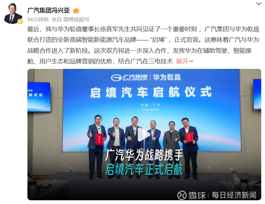 冯兴亚认为,广汽集团与华为的合作方式,既保留了以主机厂为主导的特征,又融合了华为智能化具备的特点,从而可以更加充分地发挥双方优势。